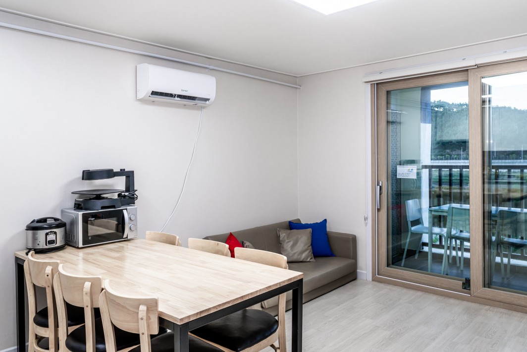 방 정보 객실명 형태(스타일) 크기 인원(기준/최대) 빅젤리피쉬1 20평형 20평 2/6 가격 정보 비수기 준성수기 성수기 극성수기 추가요금 주중 금요일 주말 주중 금요일 주말 주중 금요일 주말 주중 금요일 주말 150,000원 150,000원 150,000원 140,000원 140,000원 140,000원 140,000원 140,000원 140,000원 140,000원 140,000원 140,000원 15,000원 시설안내 TV, 쇼파,전기밥솥, 주방용품일체, 드라이기, 샤워용품( 샴프, 린스, 바디, 일회용 바디 스폰지) 기타 사항 24개월 미만의 유아는 추가요금이 포함되지 않습니다. 목록